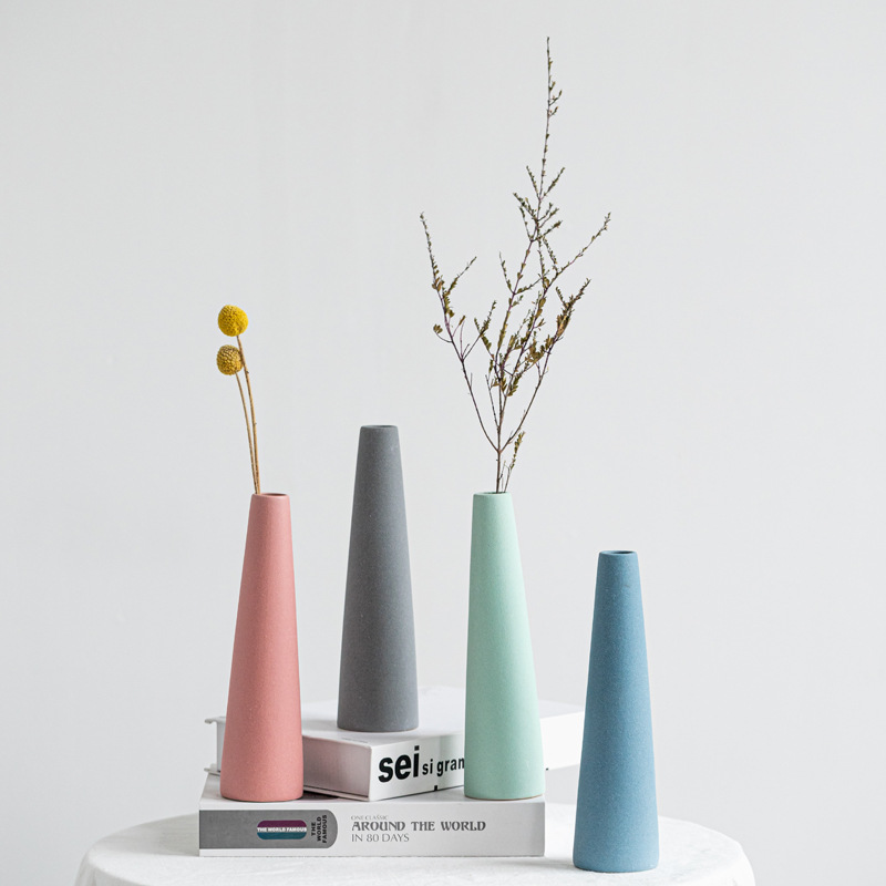 Light luxury Japanese style fresh vase ceramics, style frosted flower insert cone matte decorations, home decorations