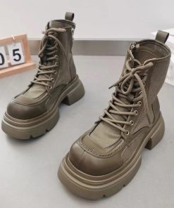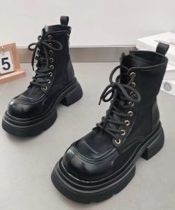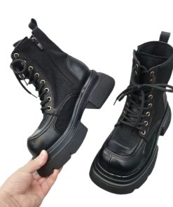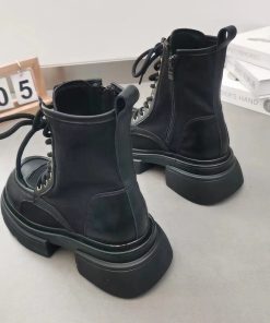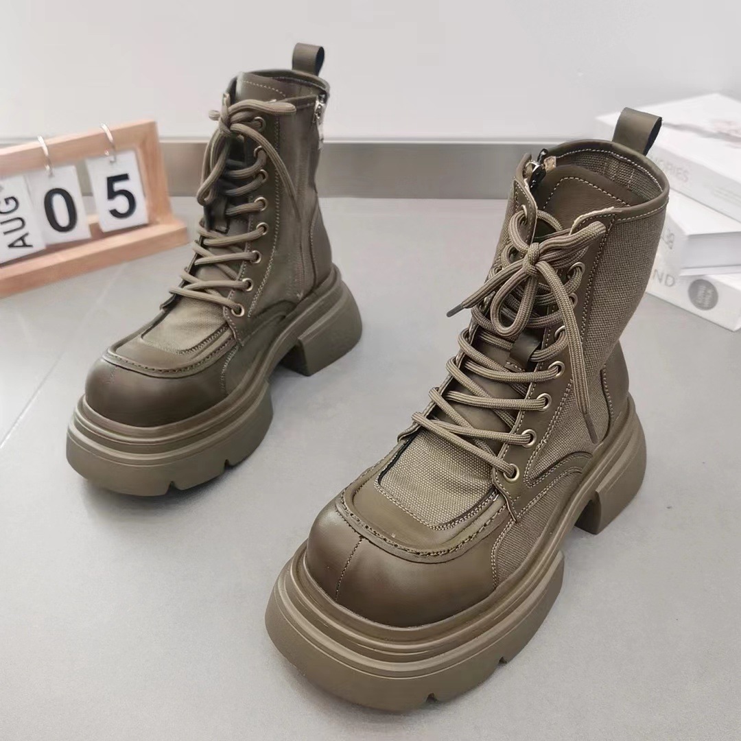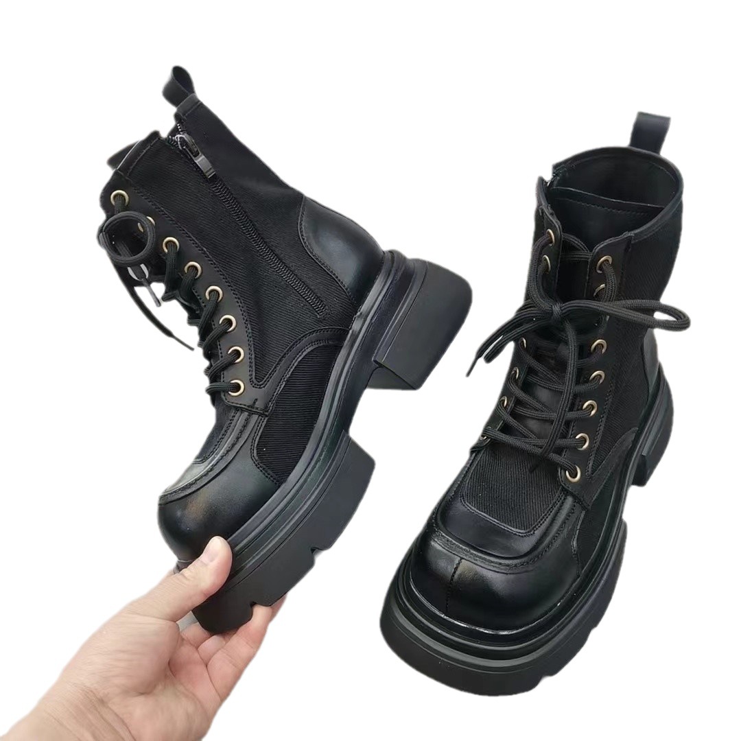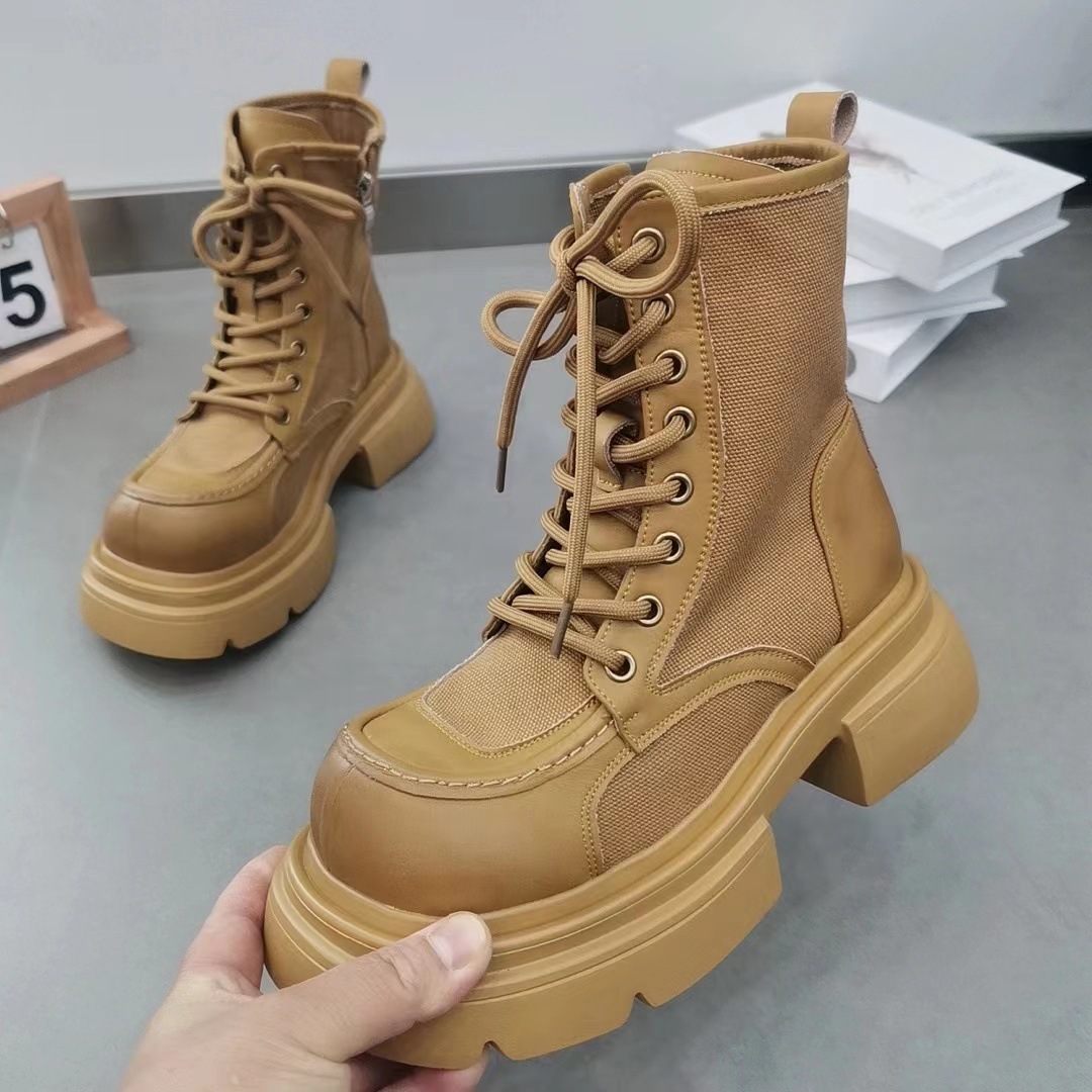 Martin boots for women in autumn and winter doll toe sponge cake bottom small short boots tied work boots motorcycle boots
