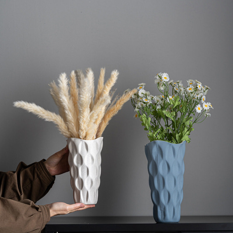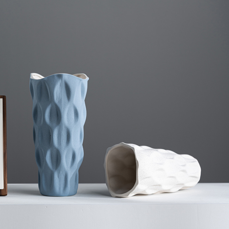 Modern macaron trumpet ceramic vase Simple glazed home decoration ornament piece