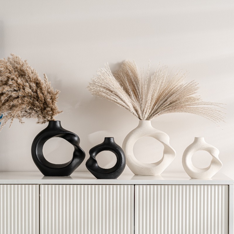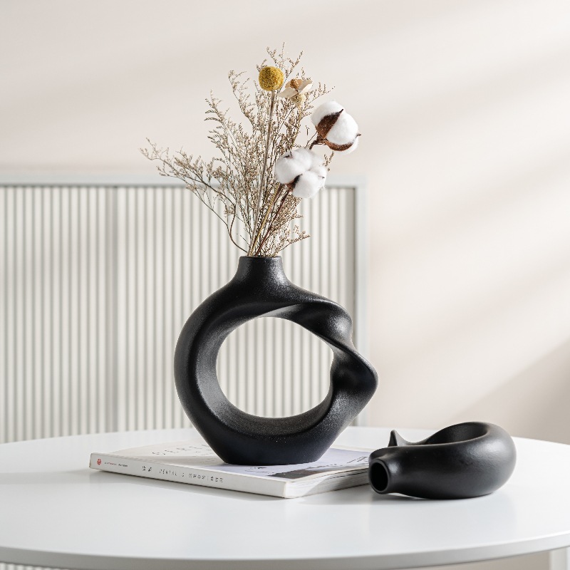 Modern minimalist ceramics, twisted round vases, home decoration ornaments style