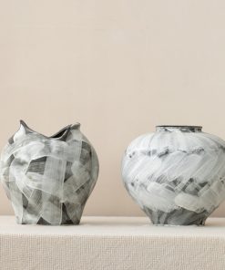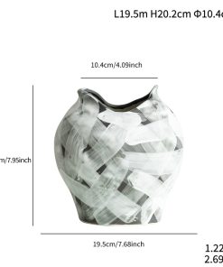 Modern minimalist style ceramic watercolor ink white pattern vase light luxury high-end home decoration
