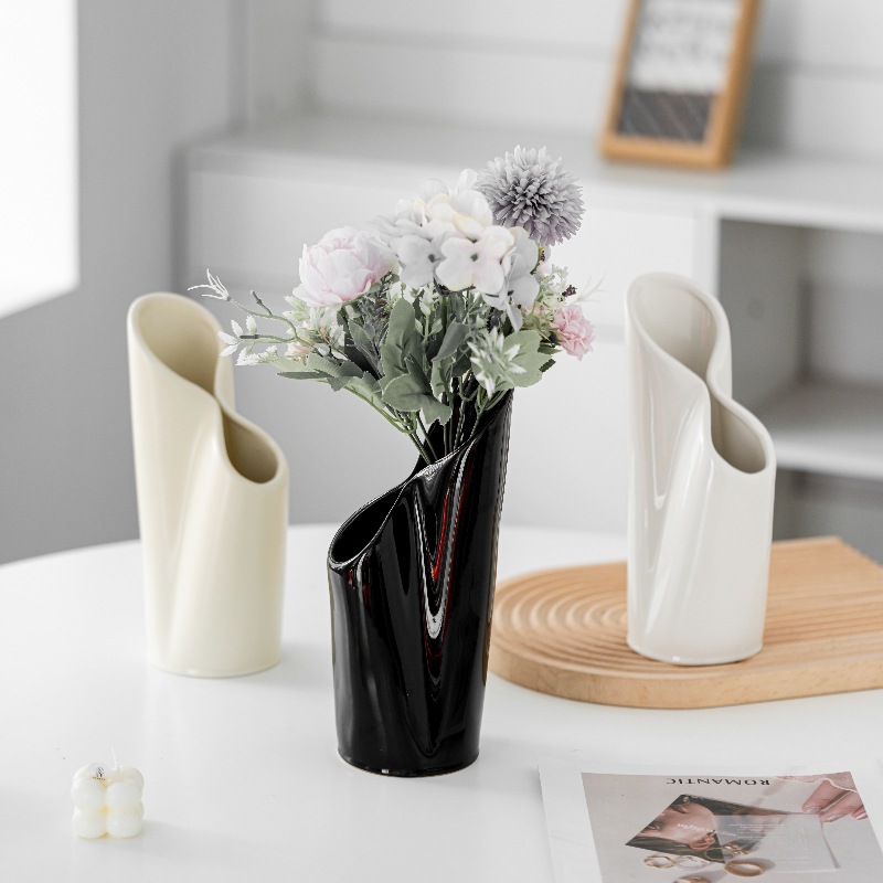 Modern simple ceramic vase light luxury high-end ornaments high and low mouth art flower insert