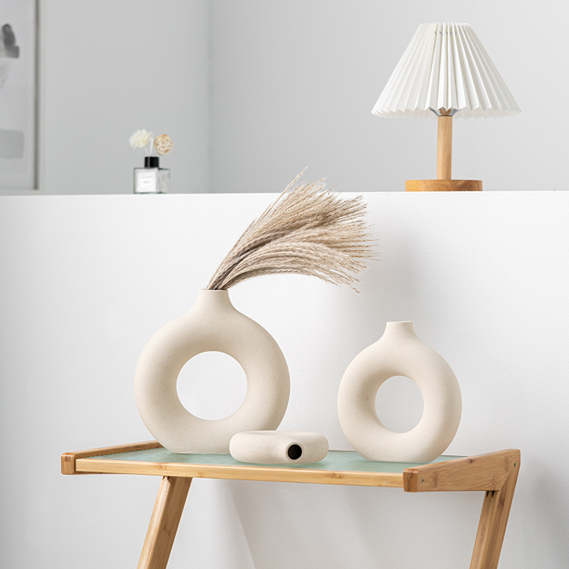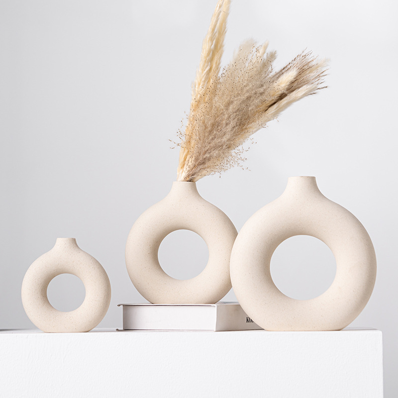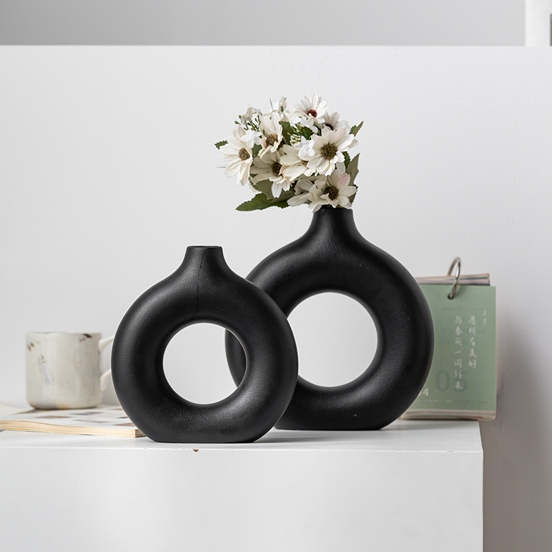 Modern simple circle ceramic vase light luxury high-end decorations home decorations