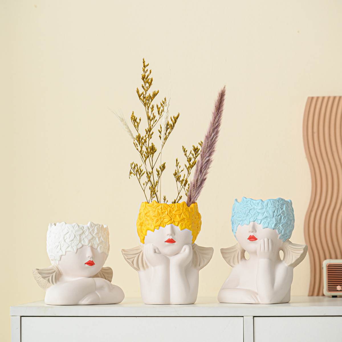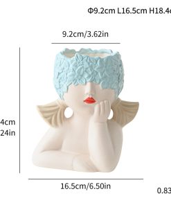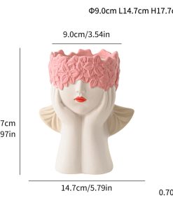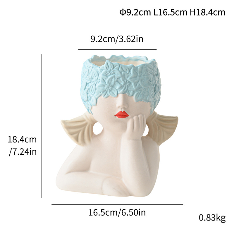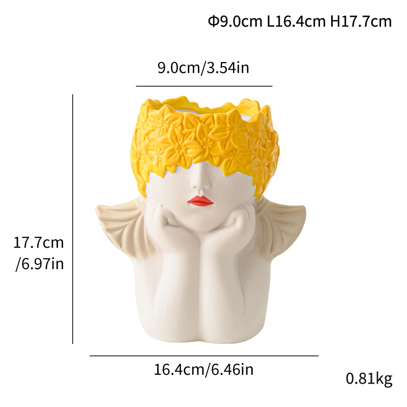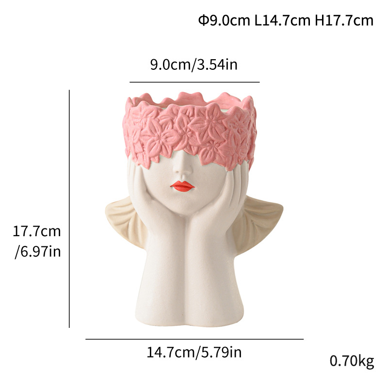 Modern simple multi-color girl flower head human body ceramic vase flower arrangement gift home decoration cross