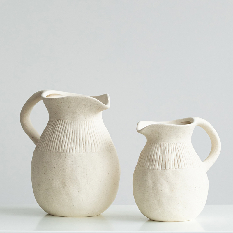 Modern simple single ear vertical striped ceramic vase furniture ornaments craft decoration