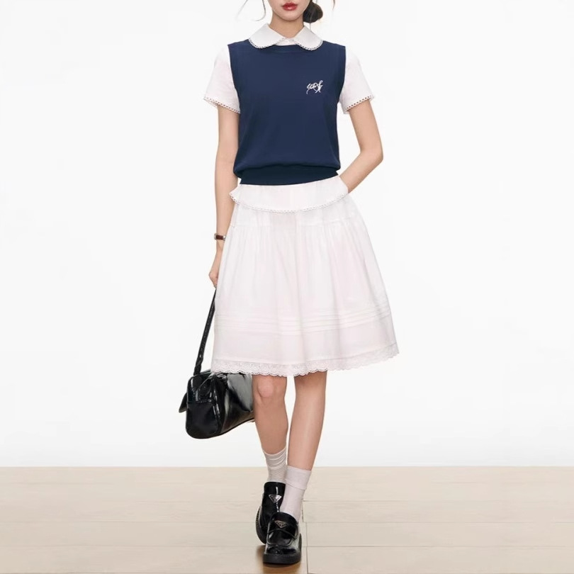 Month issue shirt, mid skirt, vest, three-piece commuting suit for summer women