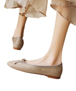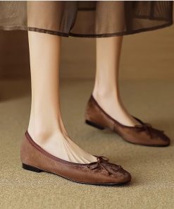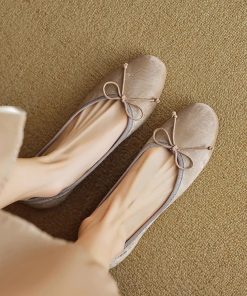 New Chinese style soft leather flat-sole single shoes for women in spring and summer bow soft leather beans shoes egg roll shoes