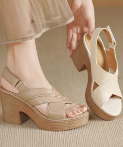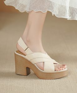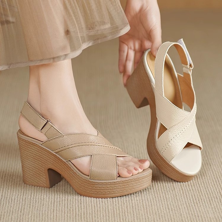 Open-toed thick-soled heeled sandals for women wearing soft leather straps and fashionable shoes for summer small high heels