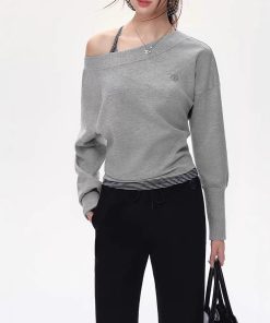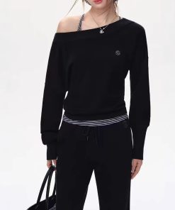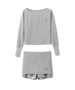 Original off-shoulder bat sleeve long-sleeved shirt for women fashion hoodies suit lazy temperament two-piece set