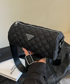 Oxford cloth cylinder crossbody bag women’s horizontal version niche pillow fashionable and versatile large capacity bucket bag crossbody shoulder bag
