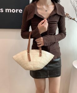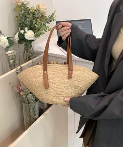 Pastoral grass weaving bag summer vacation lightweight beach bag one-shoulder armpit bag tote women’s bag