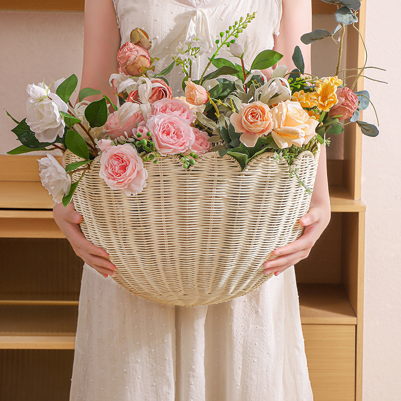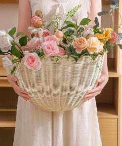 Pastoral style wicker wall-mounted key storage basket Homestay decoration toys storage basket Hand-woven basket