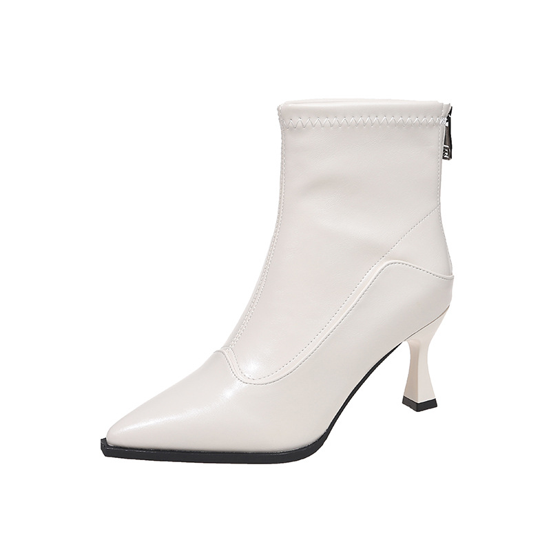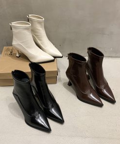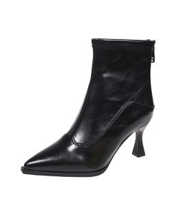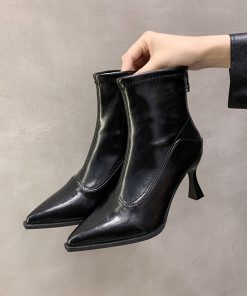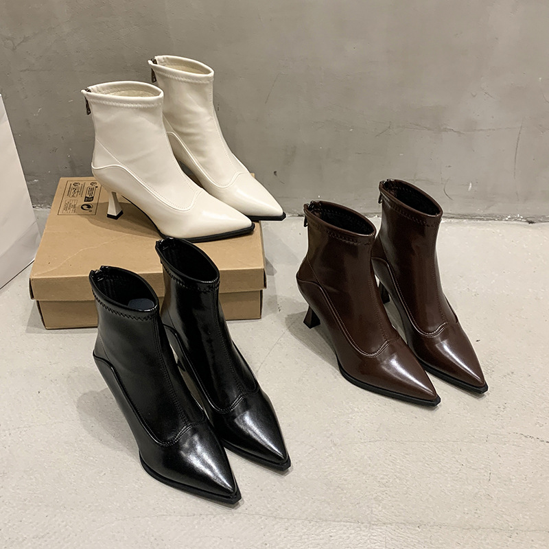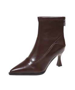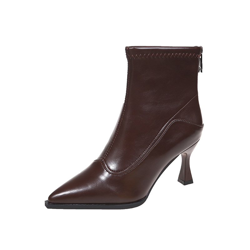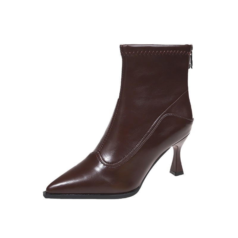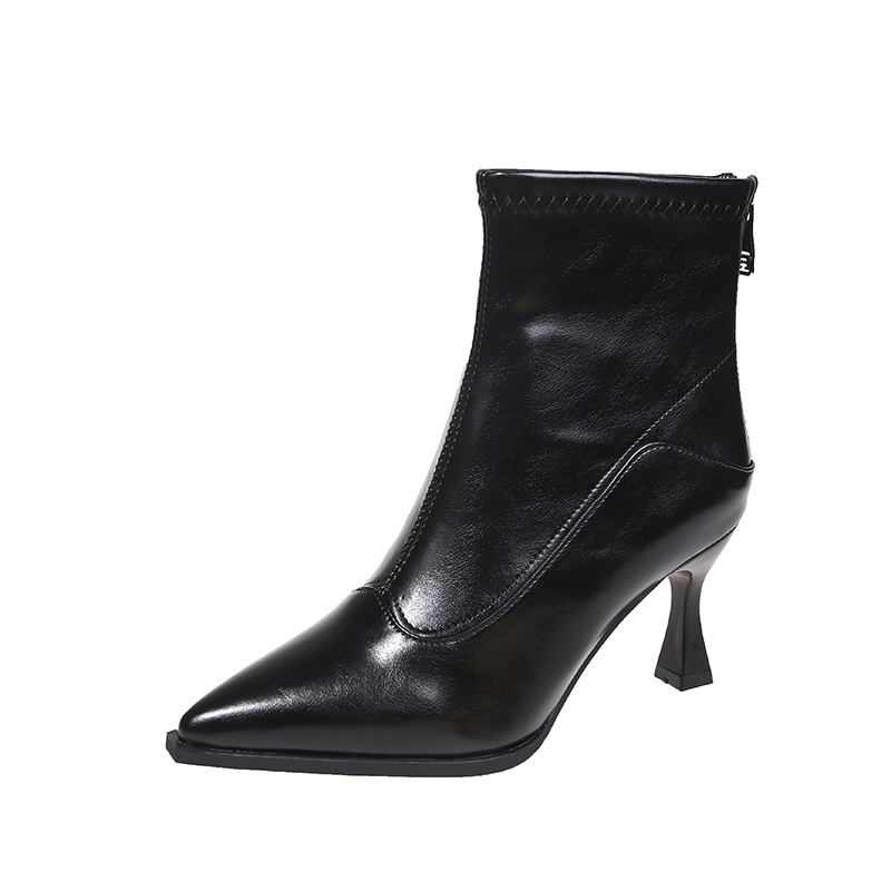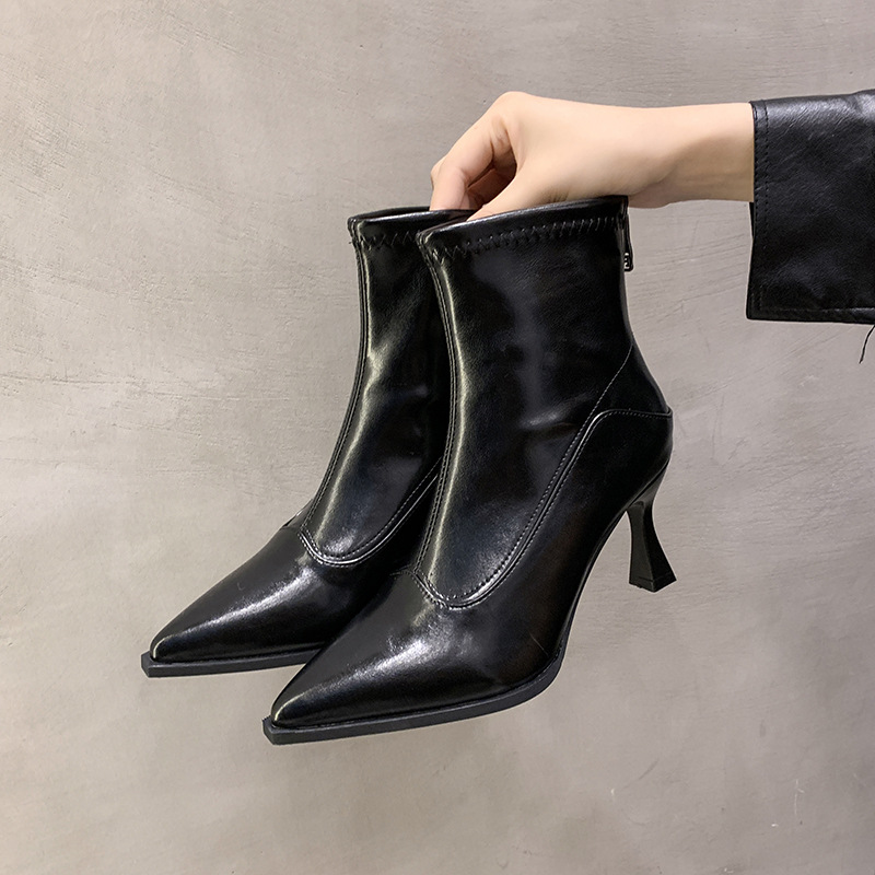 Pointed short boots for women’s autumn and winter boots plus velvet short boots niche slim women’s boots thin heels high heels