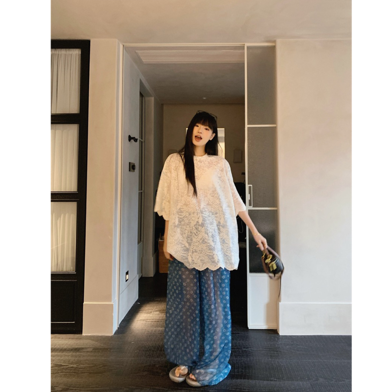 | color | Lace shirt, pants |