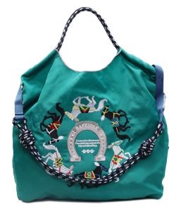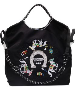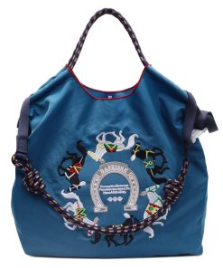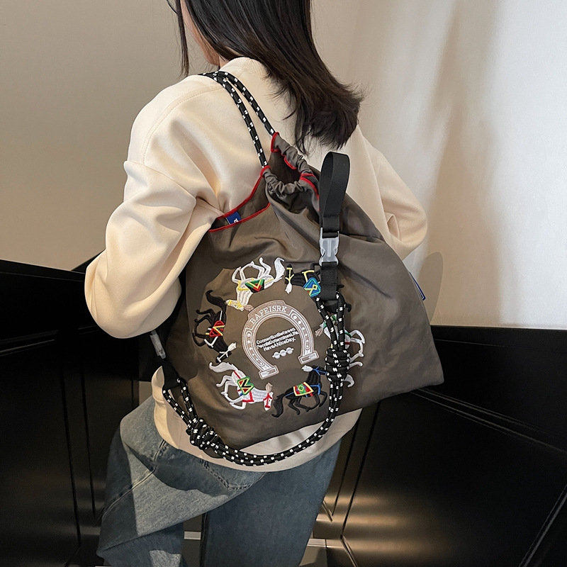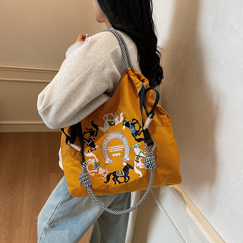 Retro embroidered shopping bag for women in spring large capacity tote bag shoulder bag nylon handbag canvas bag