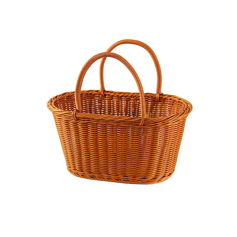 Retro imitation rattan carpentry basket household knitting vegetable basket outdoor picnic basket picking basket fruit gift basket