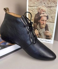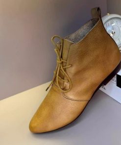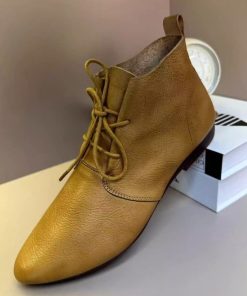 Retro pointed toe short boots flat boots for women’s spring and autumn single boots British style soft leather ankle boots soft sole lace-up Martin boots