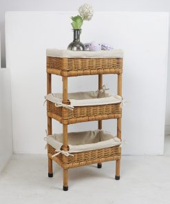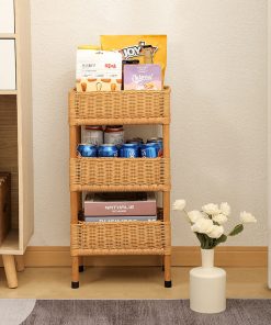 Rural style floor-standing rattan storage rack B&B Decoration debris storage rack Hand-woven solid wood multi-layer storage basket