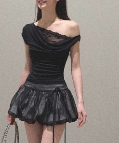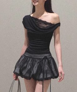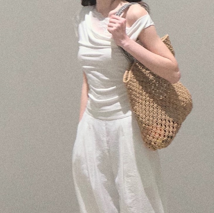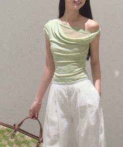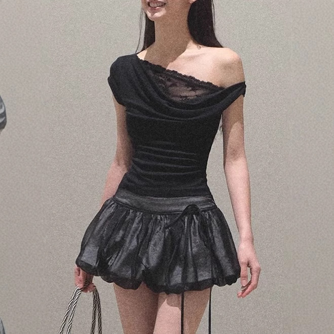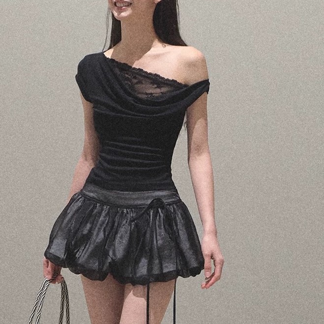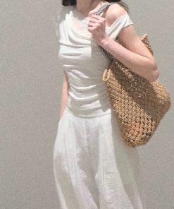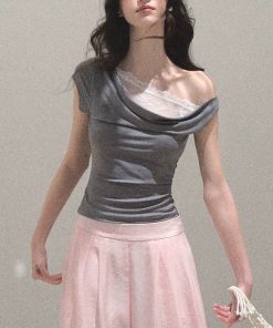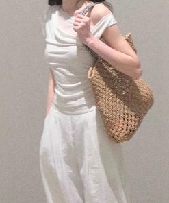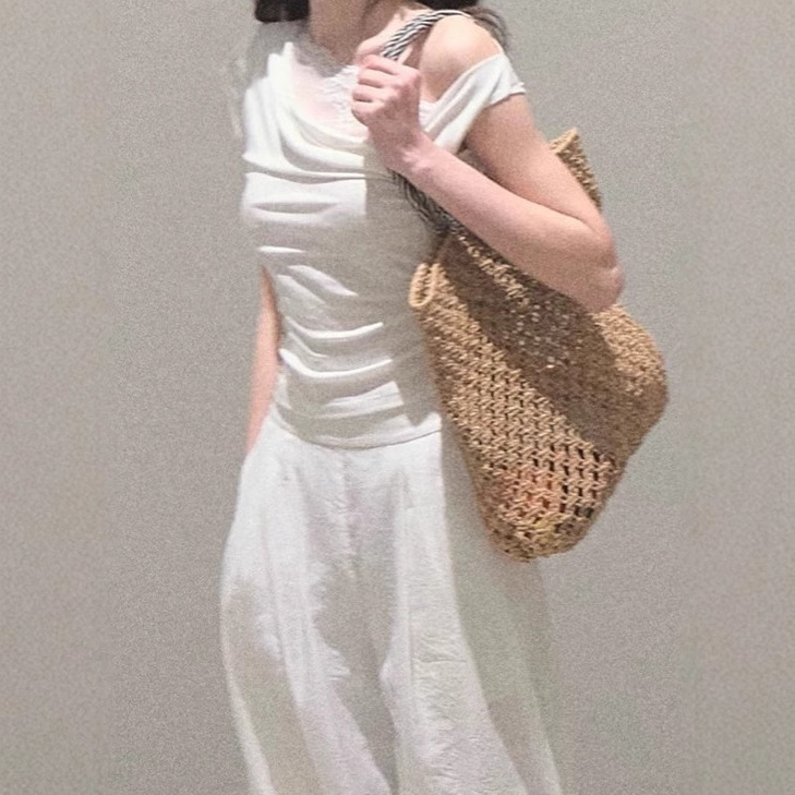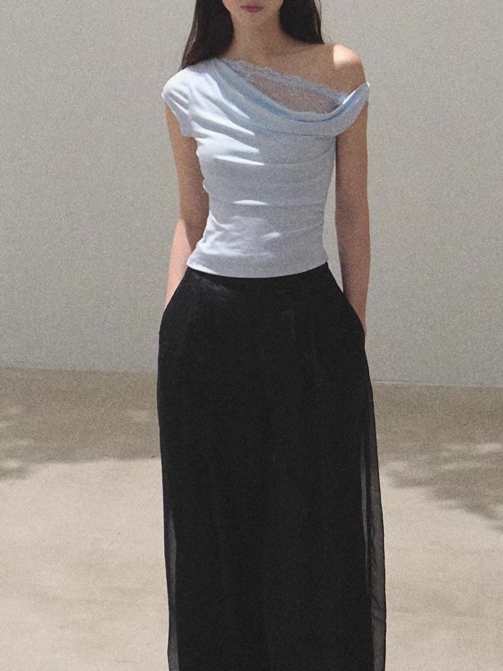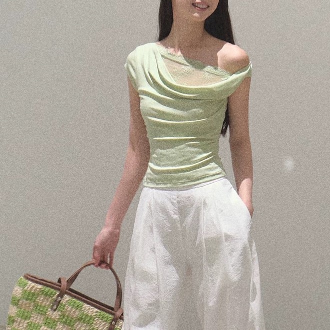 / “Season of Love” Pure Side-Shoulder Design Silhouette Knitted Top Shirt