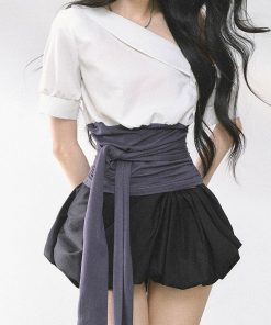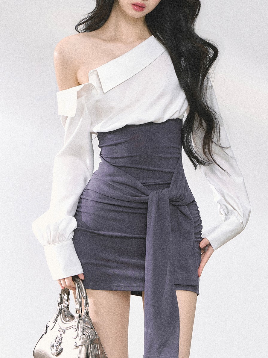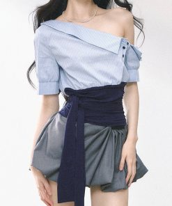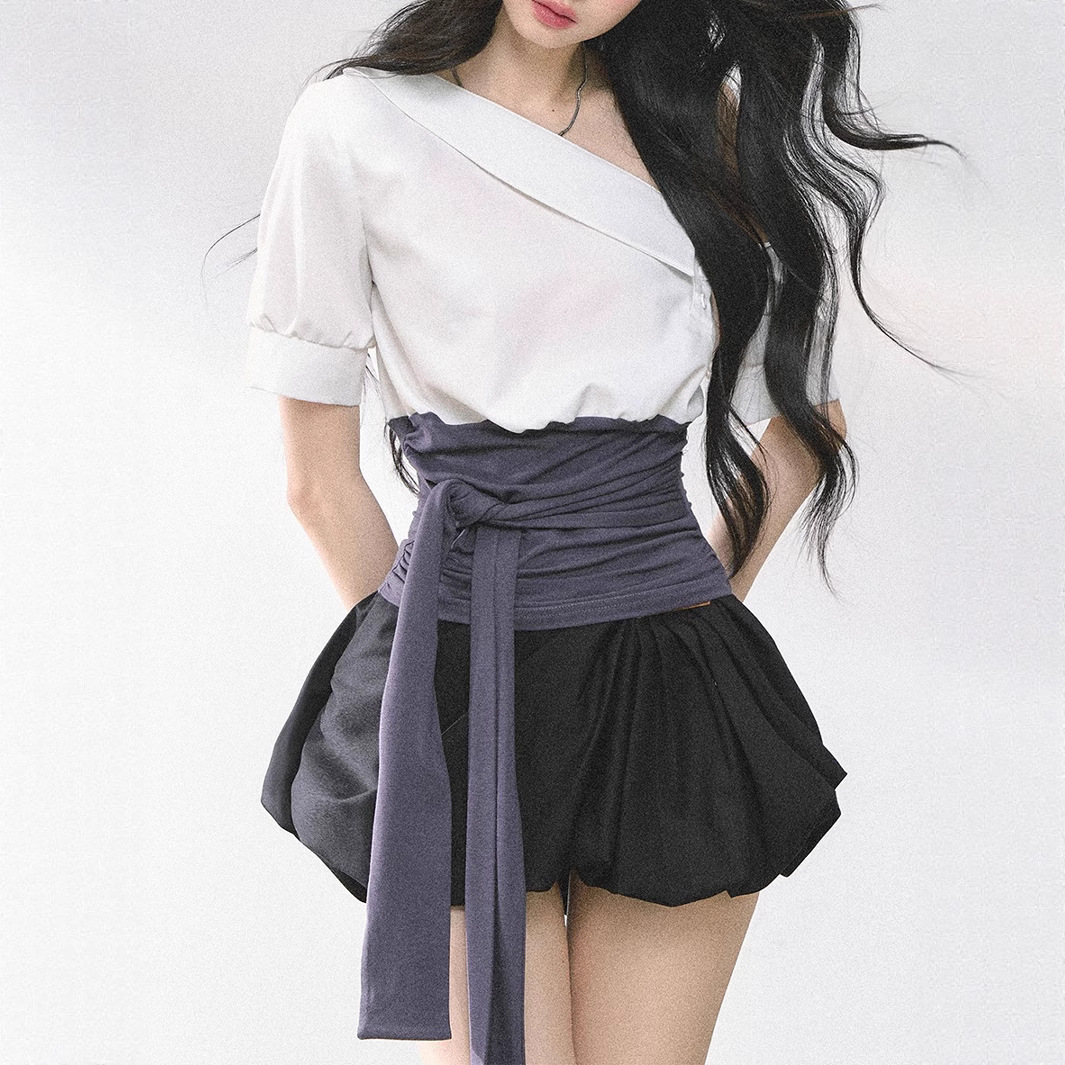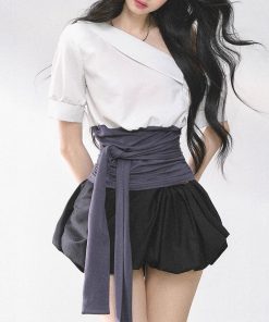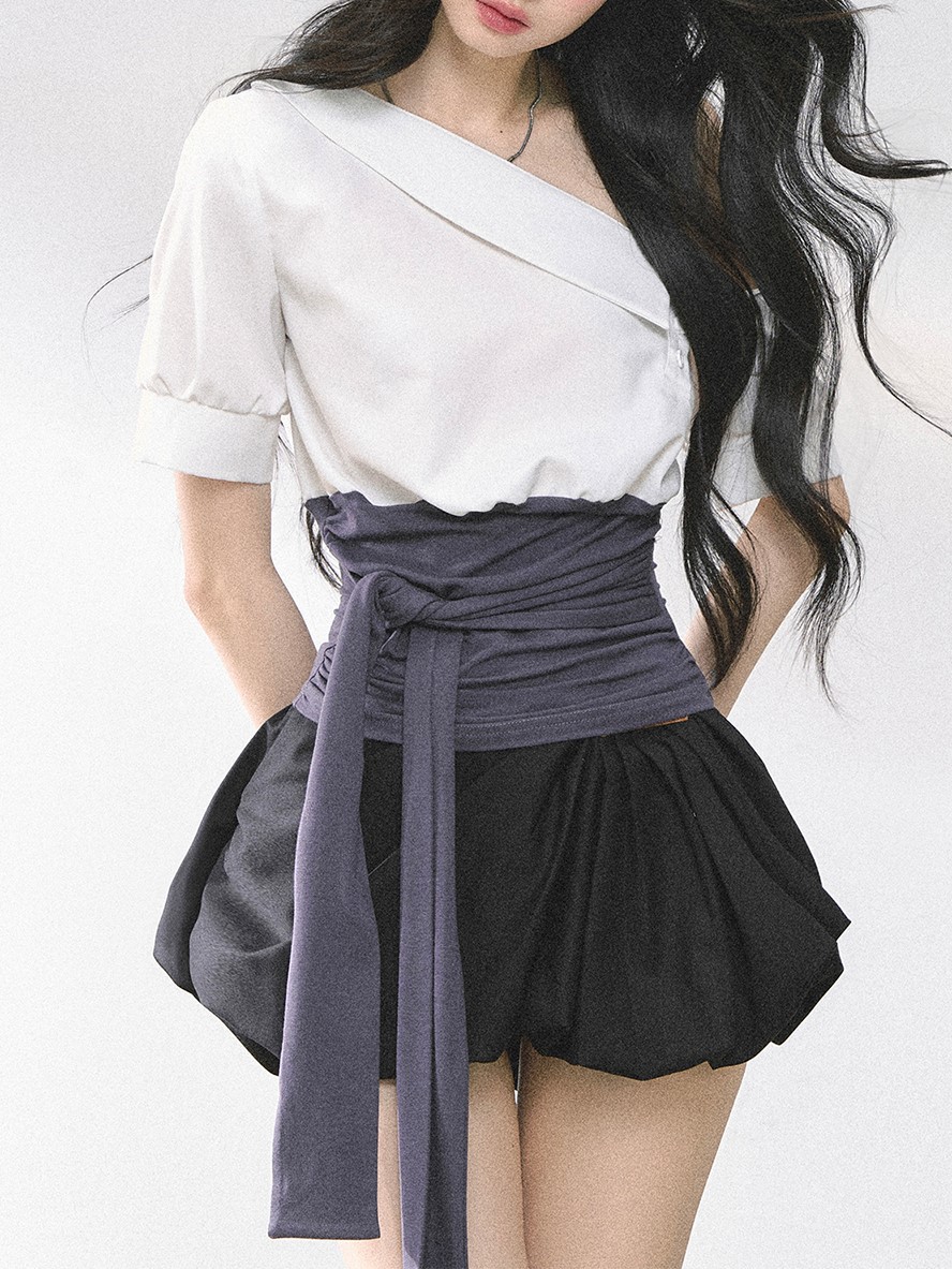 | color | Off-white top with waist cover, Blue top with waist cover, Off-white short-sleeved top with waist cover, Light blue short-sleeved top with waist cover, White and gray dress, White flower bud skirt |