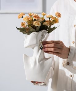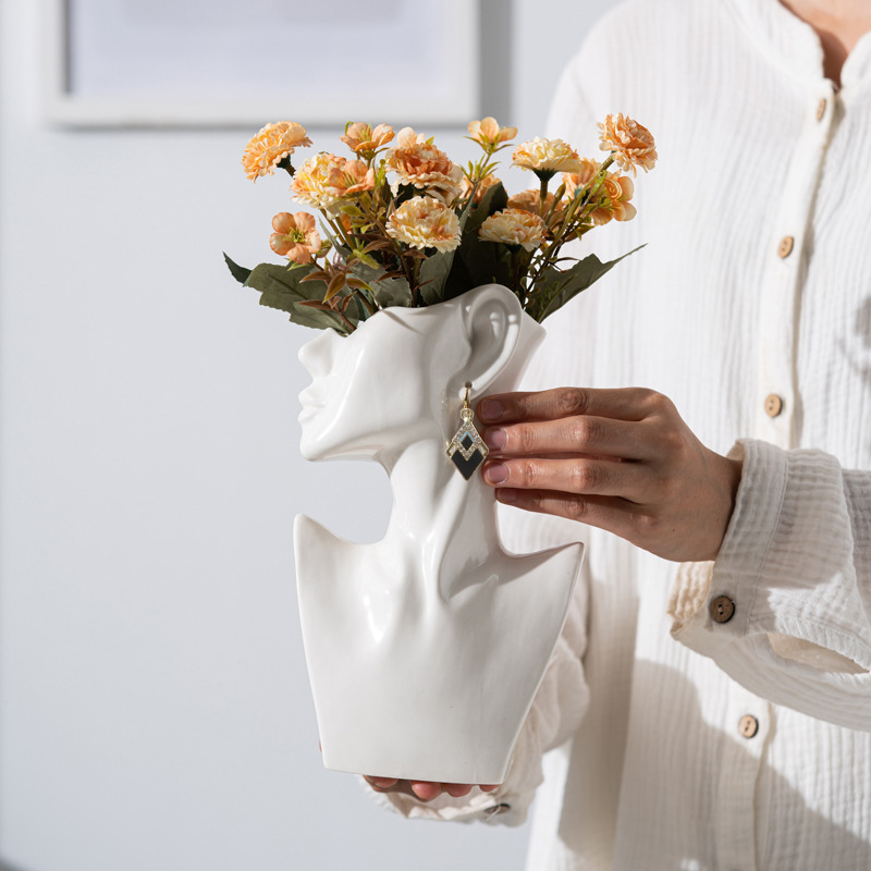 Simple, glossy glazed ceramic vase with women’s side face, high-end feel, style clothing store window decorations