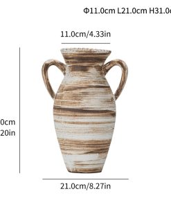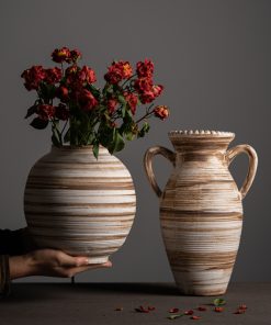 Simple Wasabi style stone pottery double-eared round pattern ceramic vase high-end light luxury home soft decoration ornaments