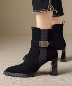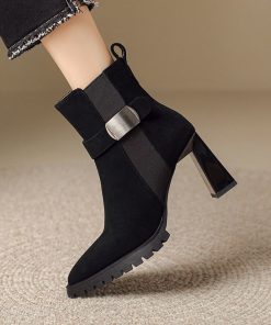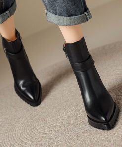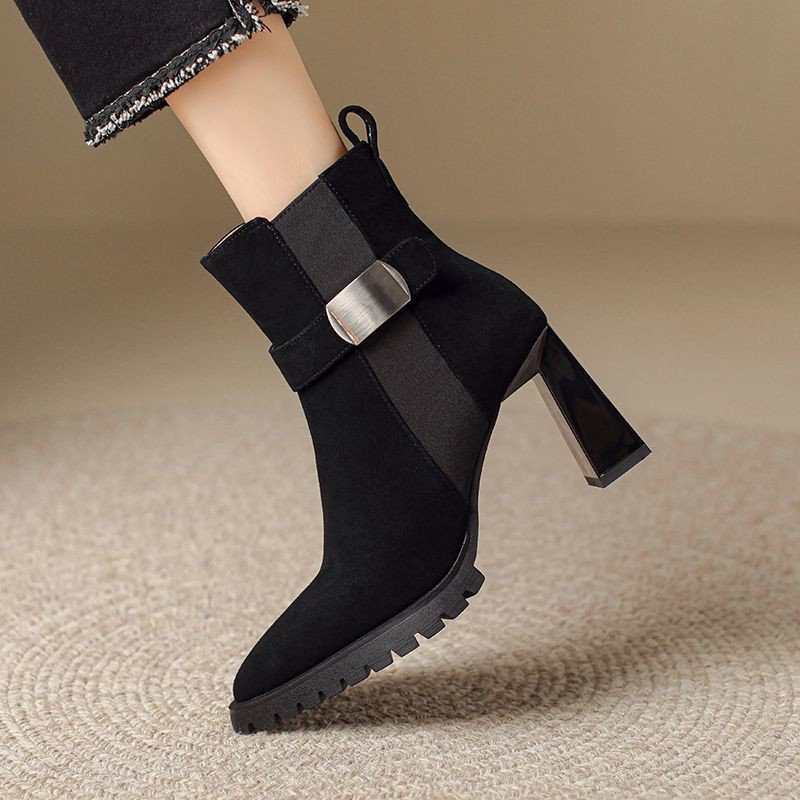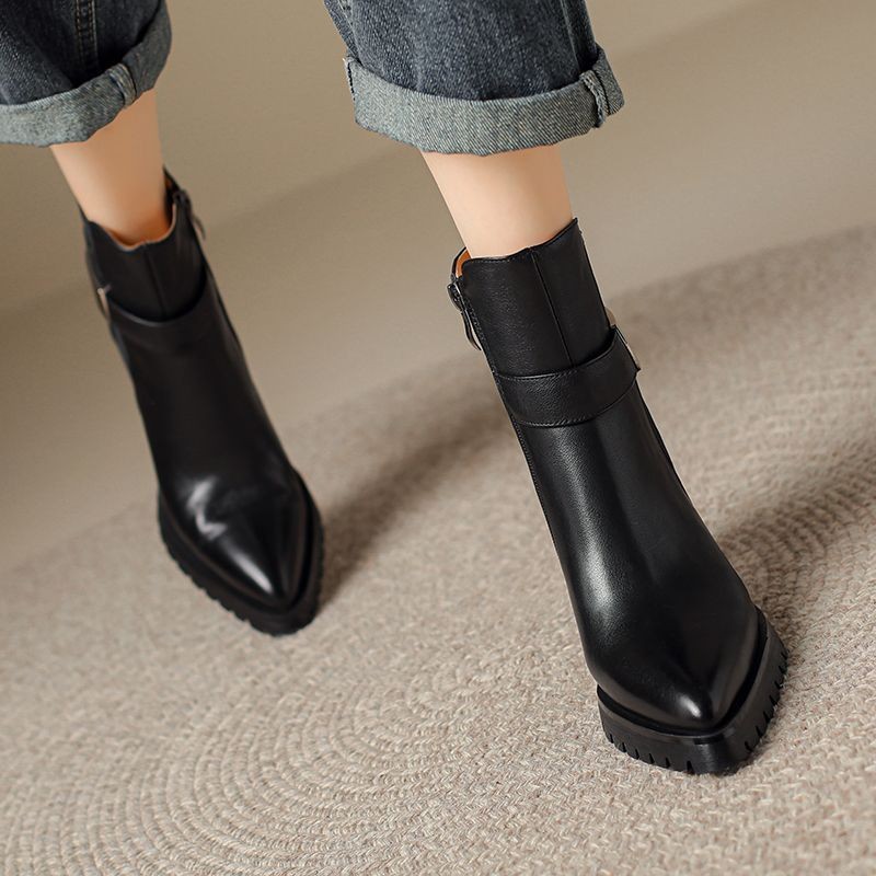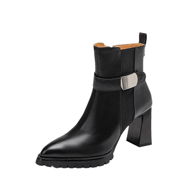Small thick-soled Martin boots for women’s soft leather thick heels thin boots for autumn and winter super high heels pointed toe boots