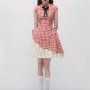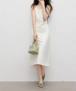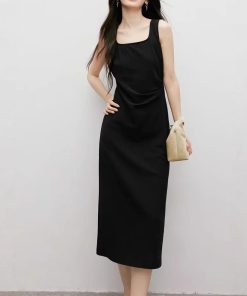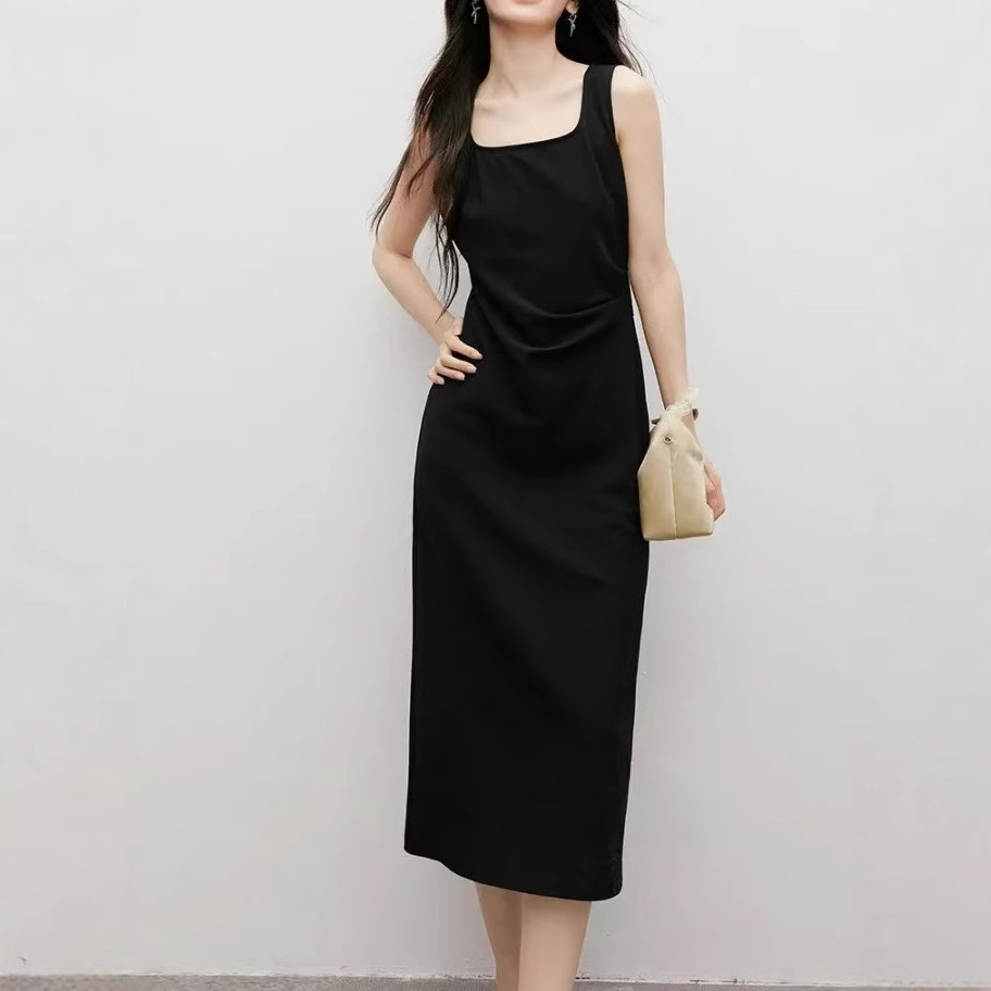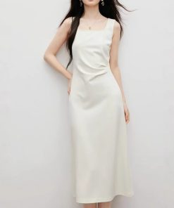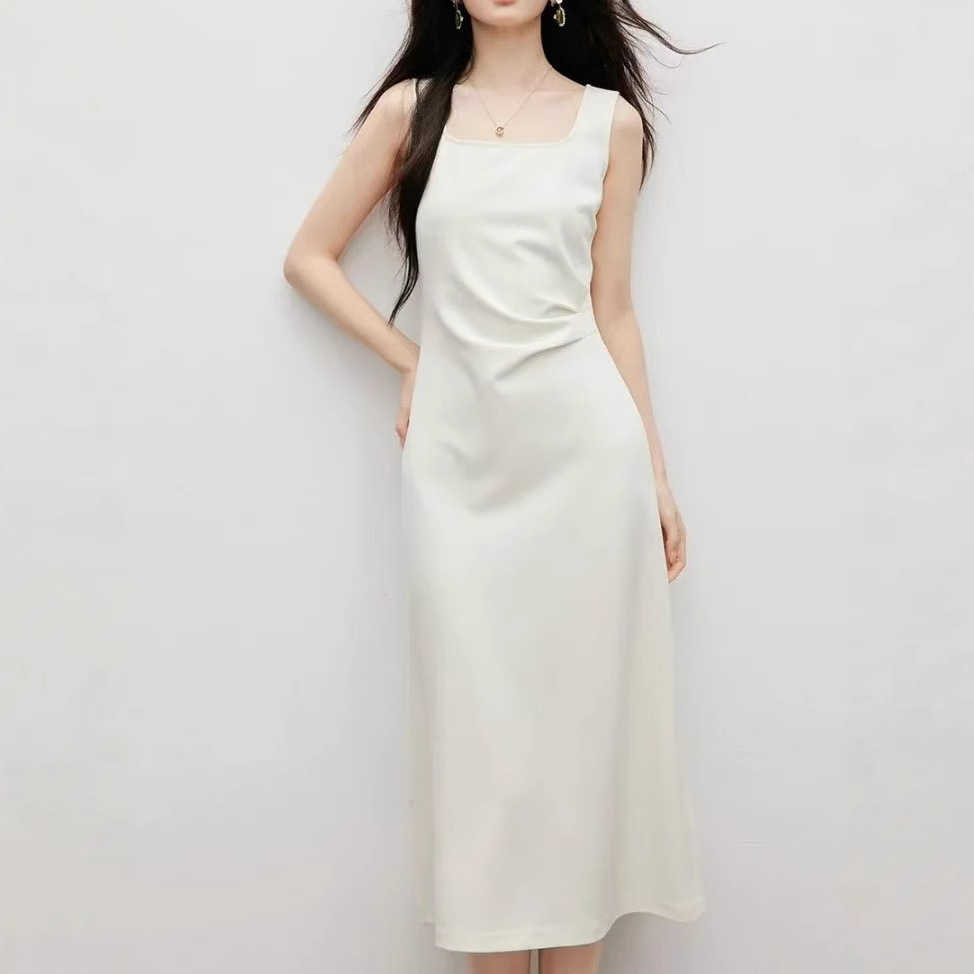 Spring women’s three-dimensional press-pleated waist-closed square collar pullover vest dress