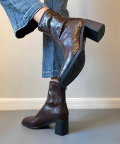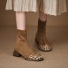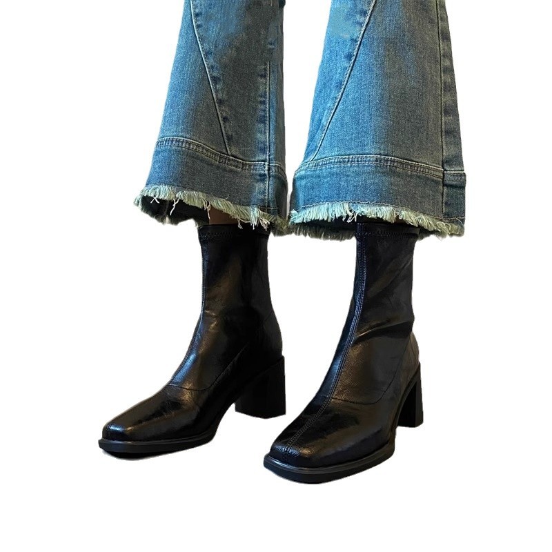 Square toe thick heel simple heightened Chelsea short boots for women middle heel commuting fashionable short martin boots