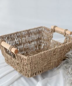 Straw storage basket desktop cosmetics storage basket square toy snack storage basket seaweed weaving