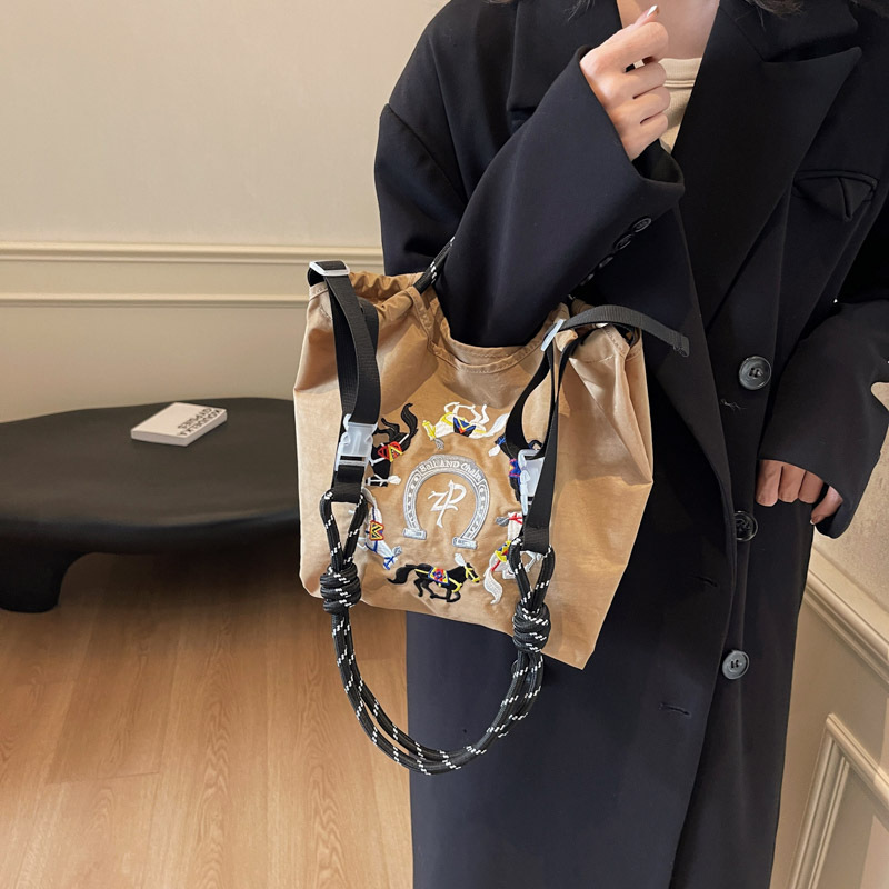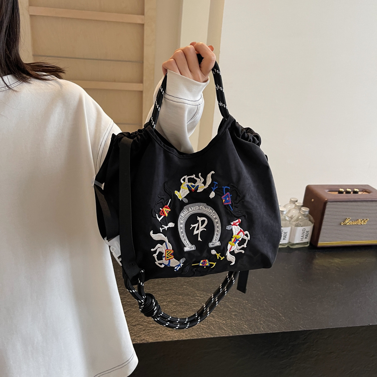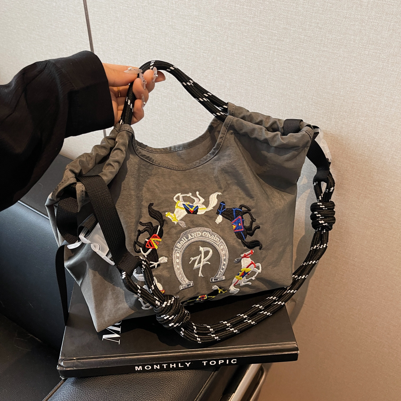 Street trendy embroidery fashionable casual and versatile crossbody bag cloth bag one-shoulder handbag
