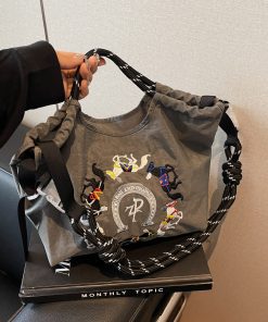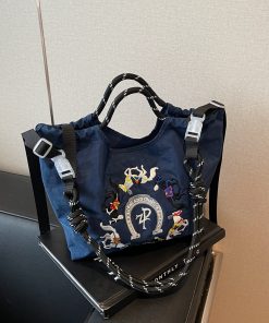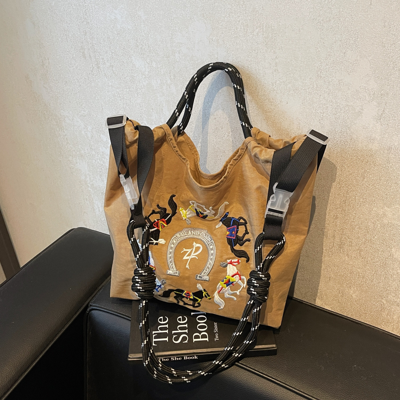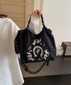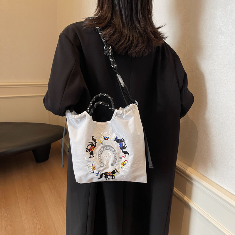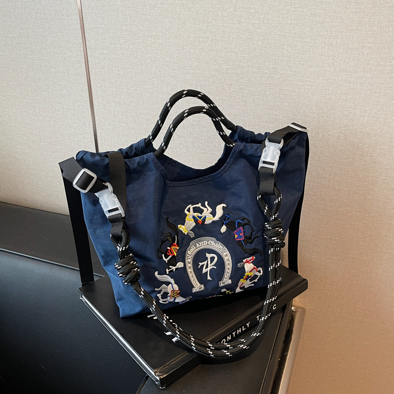 Street trendy embroidery fashionable casual and versatile crossbody bag cloth bag one-shoulder handbag