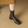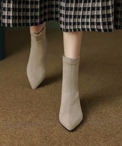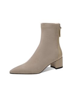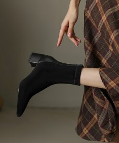 Stretch short boots for women in autumn and winter thick heel pointed toe suede splicing boots for women in middle heel soft skin thin boots