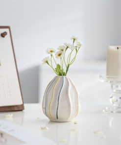Style hand-painted striped ceramic small vase fresh and simple flower arrangement high-end home decoration