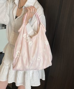 versatile embroidered small flower large capacity commuter handbag canvas bag student shoulder bag crossbody bag women