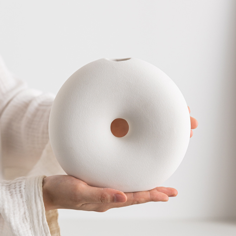 Wasabi style modern simple ceramic high-end bookshelf white matte art flower arrangement soft vase ornament