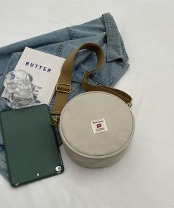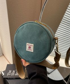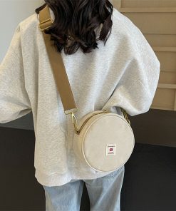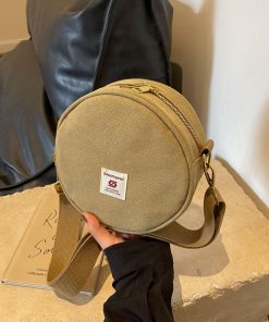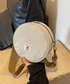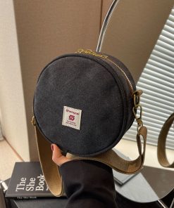 Women’s canvas round bag one-shoulder crossbody bag fashionable and fashionable cute retro fashionable versatile round bag