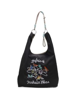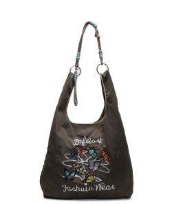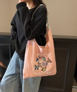 Women’s large capacity single-shoulder carry-on shopping bag embroidered environmentally friendly bag niche design commuter tote bag