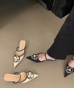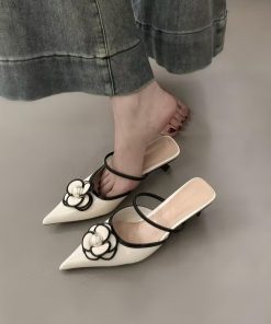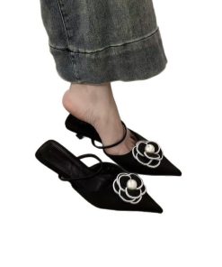 Xiaoxiangfeng high heel French bag-toe half-slipper fairy shoes with summer temperament pointed-toe shoes