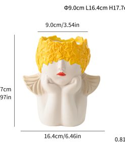 Modern simple multi-color girl flower head human body ceramic vase flower arrangement gift home decoration cross
