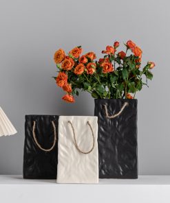 Modern simple rope tied backpack ceramic vase home light luxury high-end decoration flower pot ornaments