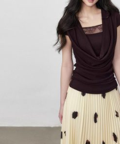 Yuzhi high-quality sleeveless top summer lace-up waist-hugging design temperament beige-white shirt for women
