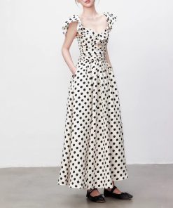 Yuzhi high-end polka dot dress summer pleated waist-hugging long skirt to make you look slim and elegant