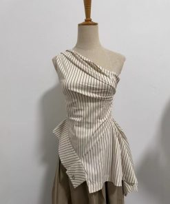Yuzhi temperament striped off-shoulder top summer high-end irregular hem design off-shoulder shirt